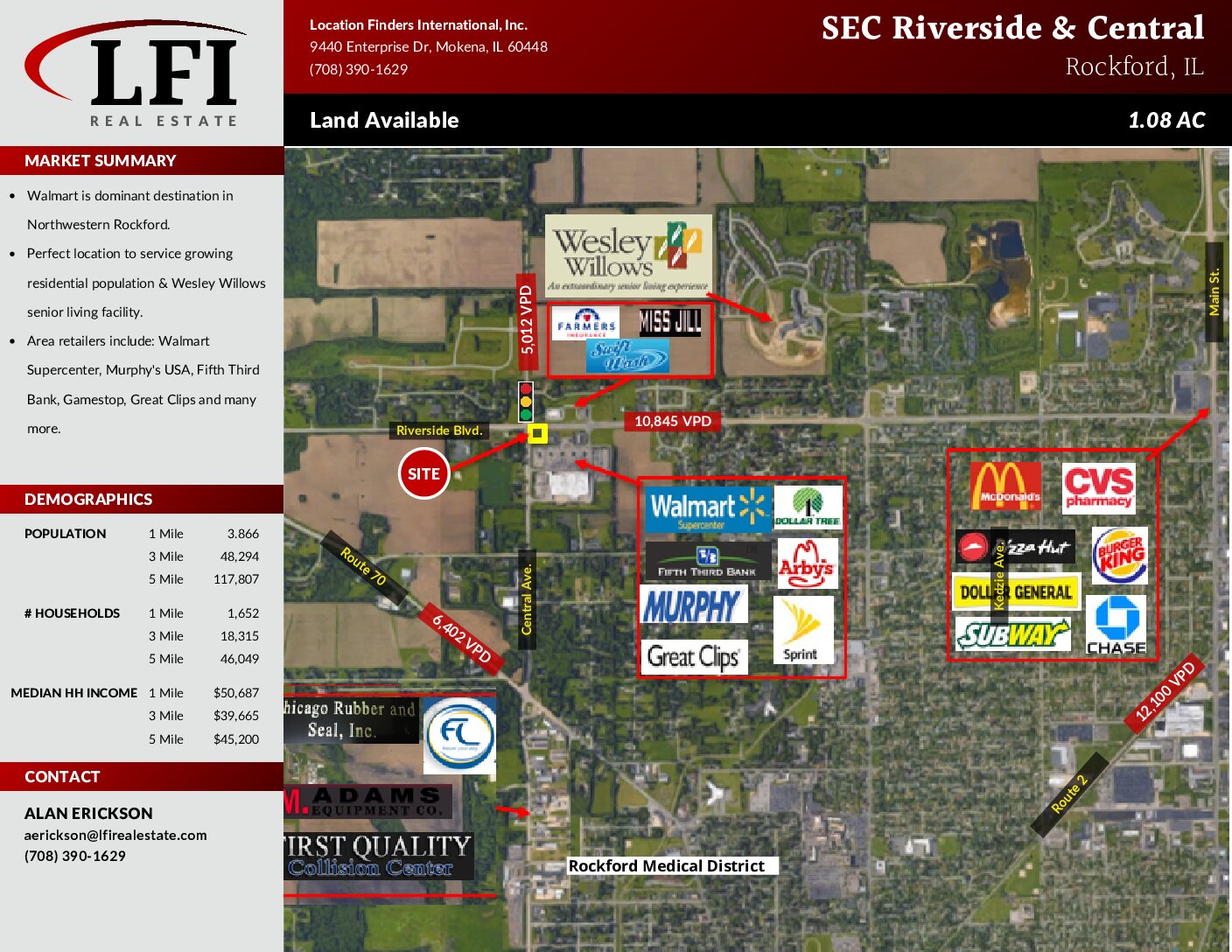 1.08 AC land in Rockford, IL. Perfect location to service growing residential population & Wesley Willows senior living facility